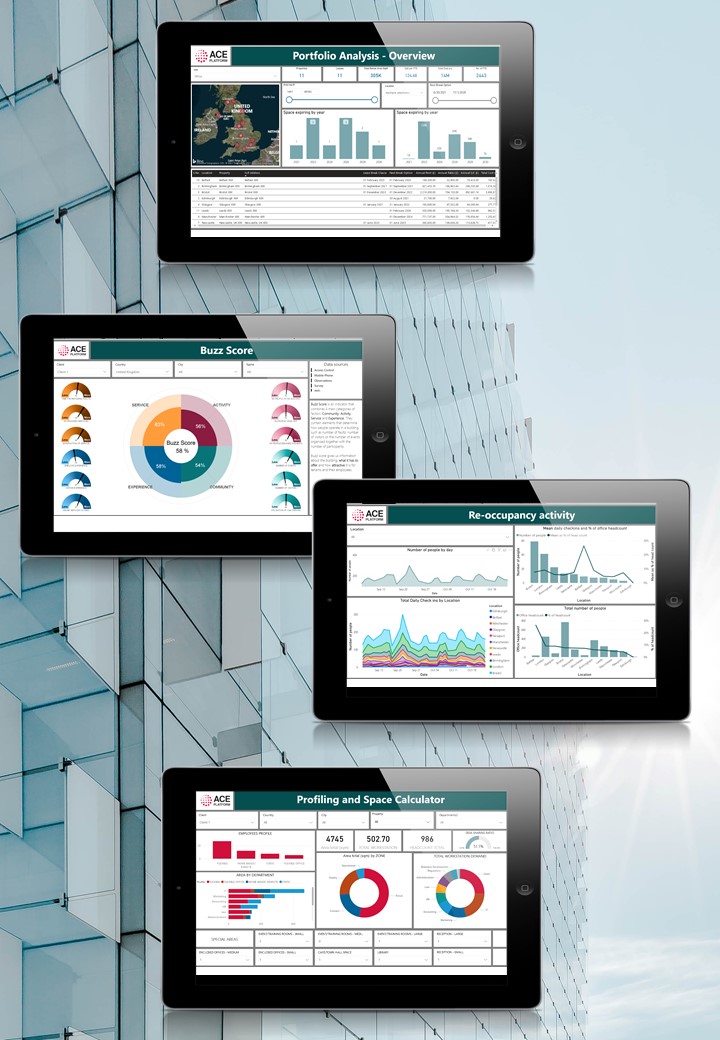 Nowadays data drives real estate decisions and the ACE Platform helps our clients to analyse this data to be able to continually enhance efficiency of their portfolio and workplace, as well as reduce risk and environmental impact.